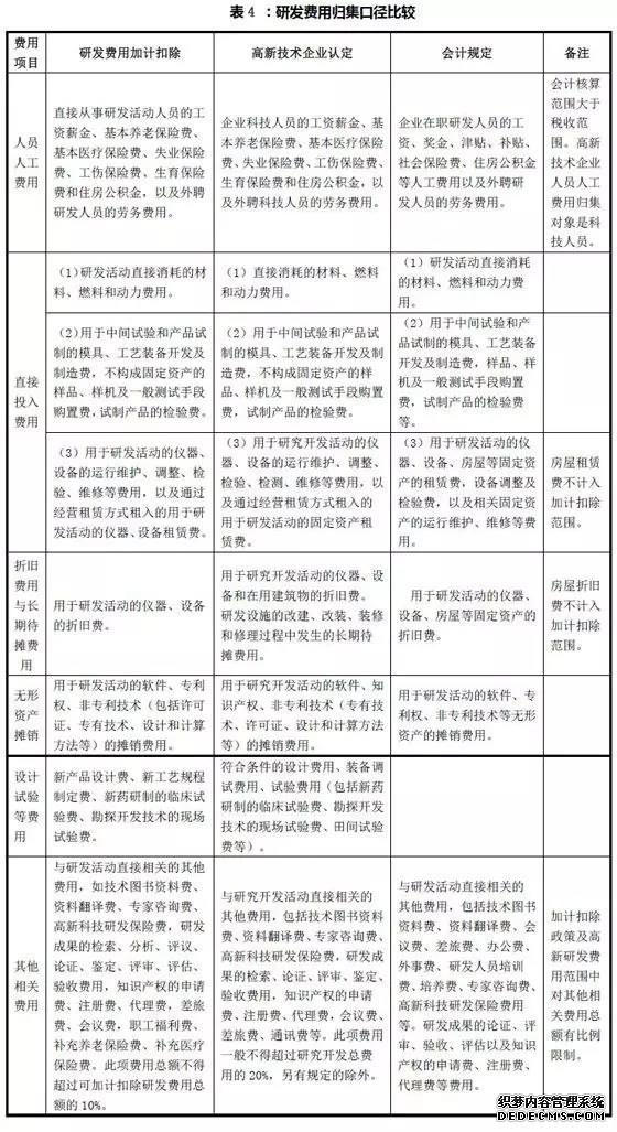 三個研發(fā)費用歸集口徑相比較,存在一定差異(見表4)。形成差異的主要原因如下: